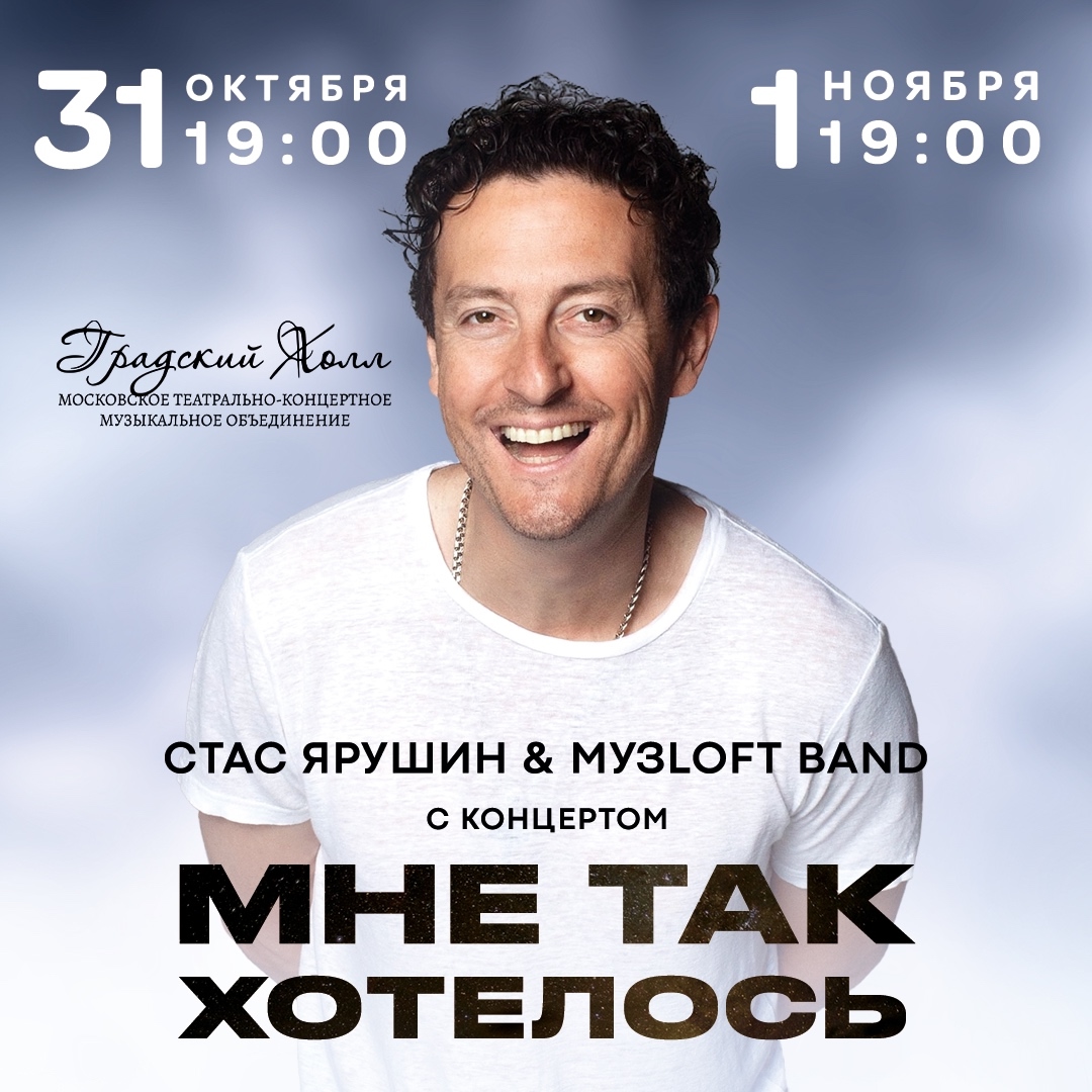 31 октября и 1 ноября 2025 года в Московском Центре исполнительских искусств пройдет концерт Стаса Ярушина — актера, сценариста и певца. Талантливый шоумен, актер и телеведущий, Стас Ярушин продолжает покорять музыкальный олимп со своим концертным туром «Мне так хотелось».