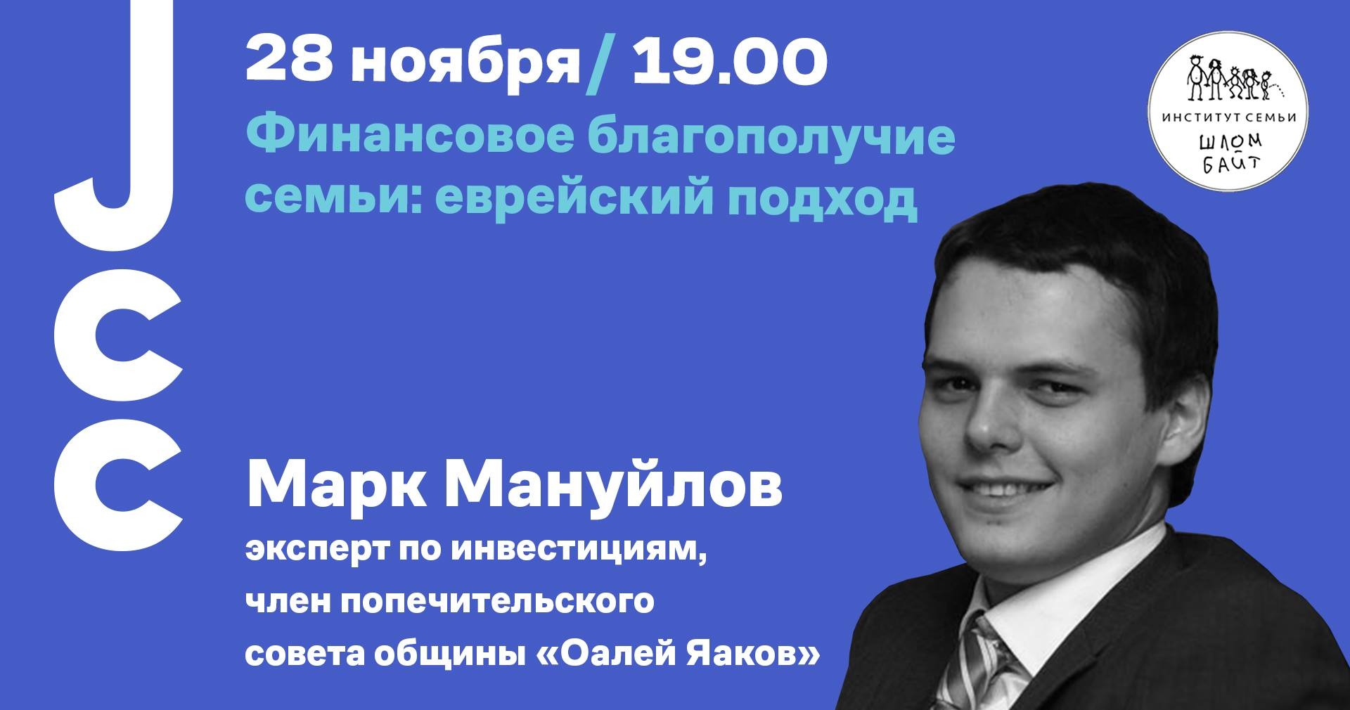 Встреча с независимым экспертом в области инвестиций Марком Мануйловым, на которой он расскажет о современных подходах к финансовому благополучию семьи и о еврейской традиции, основанной на заповедях Торы. Сколько тратить на нужды семьи? Насколько дорогие подарки нужно делать жене? Как правильно заниматься благотворительностью? Что рассказывать детям о значении денег в жизни? У вас будет возможность напрямую задать вопросы и получить ответы не только от специалиста, но и от религиозного человека, строящего свою жизнь на законах и опыте еврейского народа.
