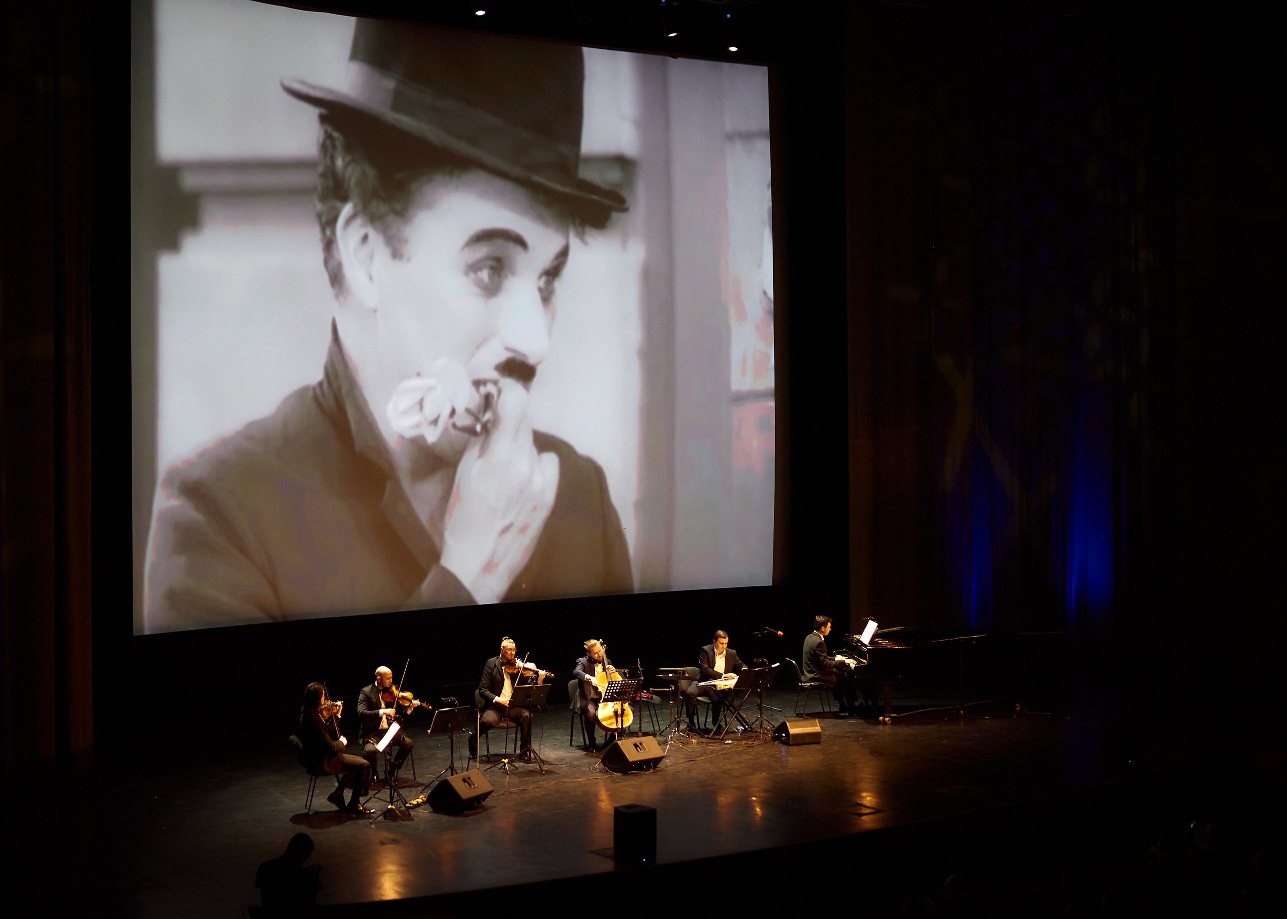Кинопоказ фильма Чаплина «Огни большого города» под живое музыкальное сопровождение квинтета Artfonix всегда долгожданное событие. Абсолютно синхронное музицирование под фильм завораживает и покоряет сердца зрителей раз за разом. Откройте для себя фильмы Чаплина вновь или познакомьтесь с ними впервые на невероятно ламповом кинопоказе. Фильм Чаплина «Огни большого города» (1931 г.) — романтическая трагикомедия, в которой он выступил в роли актёра, режиссёра, сценариста и композитора. Картина занимает первое место в списке среди 10 лучших романтических комедий по версии Американского института киноискусства. Если вы не видели ни одного фильма Чаплина, то начать лучше всего именно с «Огней большого города». Почему зрители выбирают кинопоказы с живой музыкой в исполнении квинтета Artfonix? Потому что в отличие от больших оркестров и пианистов-таперов, камерный ансамбль позволяет сохранить всю красоту гармонии и мелодии оригинальной музыки Чаплина, и одновременно достаточно гибок и подвижен, чтобы исполнять музыку абсолютно синхронно с фильмом. С 2011 года на кинопоказах фильмов «Чаплина» с участием квинтета Artfonix побывали более 15 000 человек в Москве и других городах России. Попробуйте этот вид культурного мероприятия и вы! Сделайте селфи с двойником Чаплина в фойе: традиционно в наших кинопоказах принимает участие двойник Чарли Чаплина актёр Андрей Мациевский. Вступительное слово перед кинопоказом правильно настраивает на просмотр немого кино, помогает лучше понять смыслы и сделает ваш вечер по-настоящему культурно насыщенным и запоминающимся. Музыканты квинтета Artfonix: Александр Кузавов — скрипка, лауреат международных конкурсов; Данил Довженко — скрипка; Максим Шагаев — альт; Илья Иванюк — виолончель; Илья Кронфельд — музыкант мультиинструменталист, пианист. Актёры и другие участники: Андрей Мациевский — двойник Чарли Чаплина; Дмитрий Федоров — киновед; Данил Довженко — ведущий.